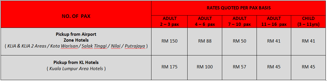 If you choose to have Twin Tower or KL Tower ticket, you may add on the price states above. We will arrange a slot when the actual tour completed and will leave you at the towers. You may explore at your own pace and back to hotel by own arrangements